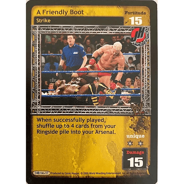 When successfully played, shuffle up to 4 cards from your Ringside pile into your Arsenal.