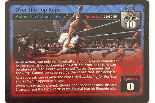 As an action, can only be played after a successfully played 5D or greater maneuver or the card titled Jockeying for Position. Your next card played this turn is considered to be played after the card titled Throw Opponent Out of the Ring.